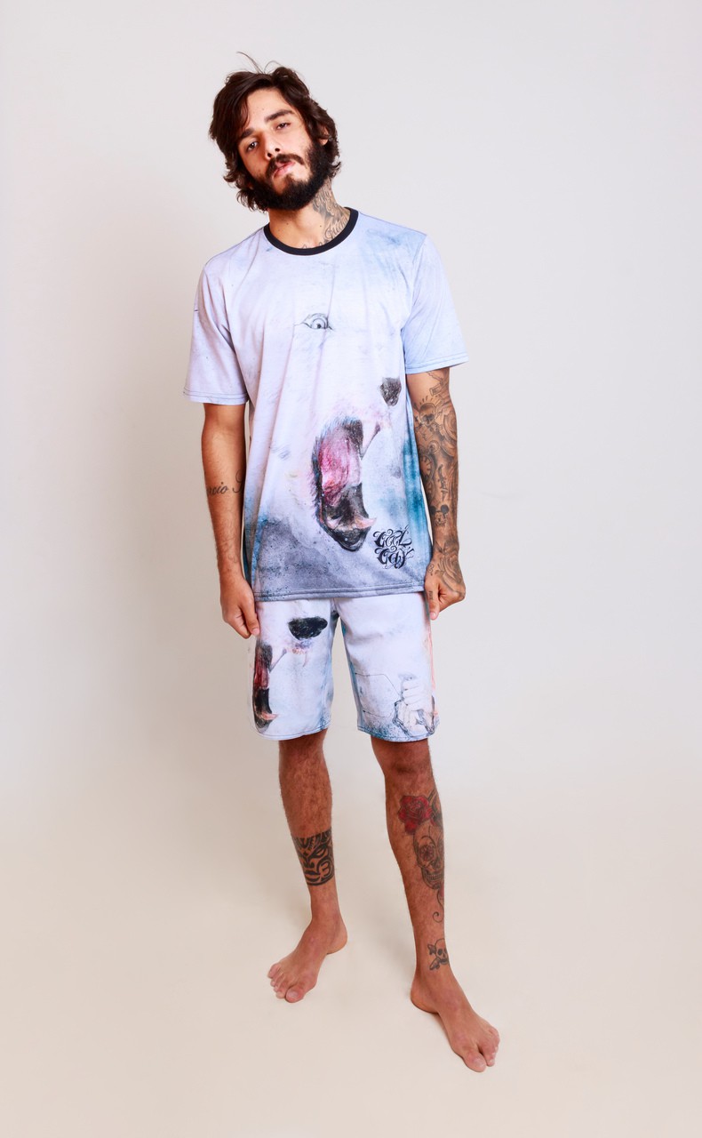 As camisetas são sublimadas com estampa digital em um tecido de malha, 100% poliéster.